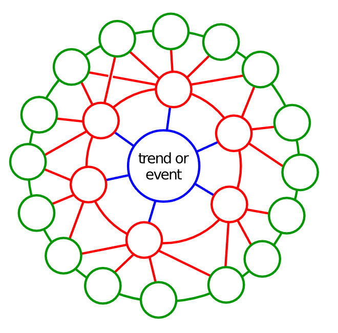 Das Futures Wheel ist eine visuelle Methode, um komplexe Zusammenhänge von Entwicklungen sichtbar zu machen.