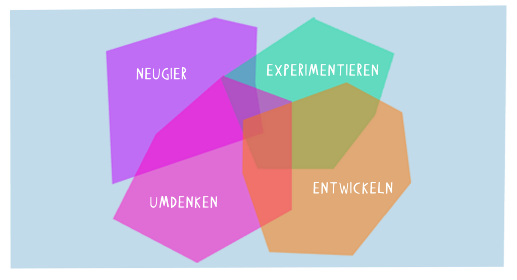 In einer Welt, die sich ständig verändert, ist Kreativität eine entscheidende Zukunfskompetenz – sowohl für Einzelpersonen, Lernende als auch für ganze Organisationen und Unternehmen. Doch wie können wir unsere kreative Denkweise gezielt entwickeln und nachhaltig fördern? Unser entwickeltes Modell NEUE Kreativität bietet eine strukturierte Methode, um genau das zu erreichen. Lass uns die vier Phasen dieses Modells genauer betrachten: Neugier, Experimentieren, Umdenken und Entwickeln.